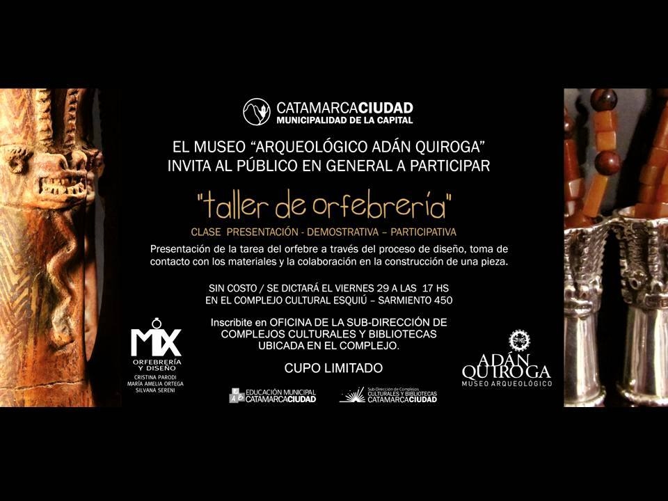 En el Taller “Clase Presentación - Demostrativa y Participativa” se mostrará la tarea del orfebre a través del proceso de diseño, la toma de contacto con los materiales y la colaboración en la construcción de una pieza. Se realizará una clase única a partir de las 17 horas en el Salón Calchaquí.
