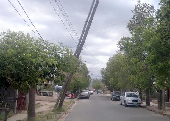 Ambos postes presentan sus bases podridas y ya están totalmente descalzados del pozo que los mantenía verticalmente, apenas sostenidos por cables de telefonía y energía eléctrica, que no se sabe hasta cuándo resistirán.