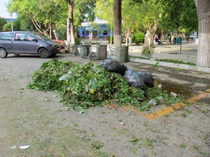 Uno de los lugares más dañados por el fenómeno meteorológico fue la plaza principal de la ciudad, lo que se reflejó en la caminería y en los jardines, y eso demandó una ardua tarea para poder limpiar todo con mucha prolijidad, que finalmente se logró en las primeras horas del martes.