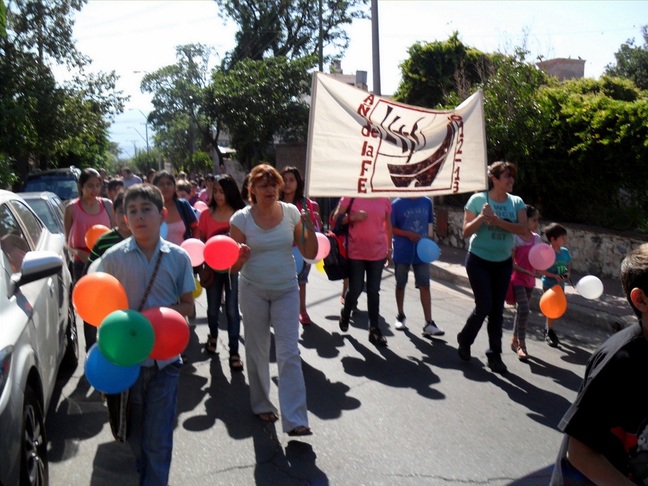 La jornada dominical dio inicio a las 9.30 cuando los niños de la catequesis se concentraron en la plazoleta Centeno y peregrinaron en un clima de fiesta hasta el templo parroquial, animados por el canto y portando globos. La Santa Misa fue presidida por el Pbro. Oscar Tapia, quien en su homilía se refirió a la Solemnidad de Cristo Rey, indicando que “en esta fiesta vemos una imagen de Jesús como un Señor glorioso, con una corona, por eso es Rey. Lamentablemente, esta fiesta se fue desdibujando con el correr de los años. Seguramente muchos adultos aquí presentes recuerdan que este día era para la Acción Católica la mejor fiesta que ansiaban tener porque los niños se oficializaban. Aquí, en esta parroquia, el Padre Sonzini hacía celebrar esta fiesta como si estuviésemos en el Vaticano, a los niños se los recibía como soldados de Cristo. Les daban un recordatorio y un distintivo que era un motivo de gran alegría para todos. Pero los avances de la posmodernidad fueron haciendo perder estos momentos sencillos y significativos para nuestra fe y hoy que culmina el año dedicado a la fe tenemos que tener en claro que nuestra fe tiene que seguir creciendo así como nuestro físico crece”.