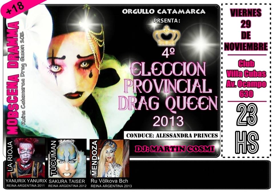 La invitación se renueva para vivir una noche diferente, junto a artistas Drag invitadas de todo el país, además el Show apertura estará a cargo de la Reina Provincial 2012 Mobscena Dramma y tendrá al talentoso Dj Martin Cosmi para acompañar el resto del evento.