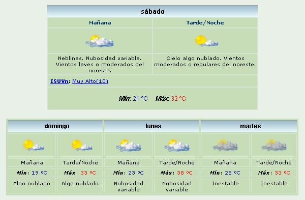 El Servicio Meteorológico Nacional no informa para el Valle Central catamarqueño probabilidades de lluvias en los próximos días. Las máximas rondarán los 33°, aunque para el lunes se espera una jornada agobiante ya que el mercurio podría llegar a los 38°. Hoy habrá vientos leves o moderados y, en general, habrá nubosidad variable y tiempo inestable.
