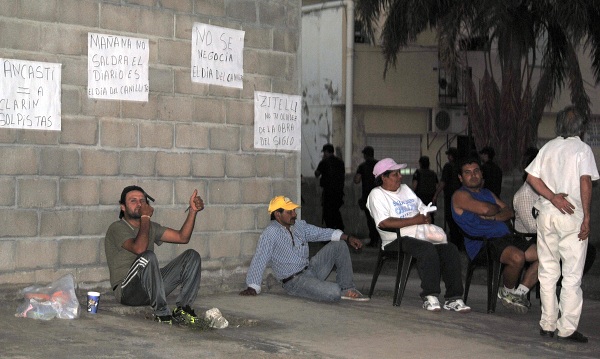 Promediando la tarde, los canillitas en protesta se instalaron frente a la imprenta del diario, en La Chacarita, donde también exteriorizaron su reclamo con pancartas y leyendas aludiendo a las razones del reproche, especialmente hacia el propietario del diario, Silvestre Zitelli. Entre otros textos podían leerse: “Zitelli, explotador, delincuente…”, “Ancasti = Clarín, golpistas”, “No se negocia el Día del Canillita”, “Zitelli de gato a millonario”, “Zitelli no te olvides de la Obra del Siglo”.