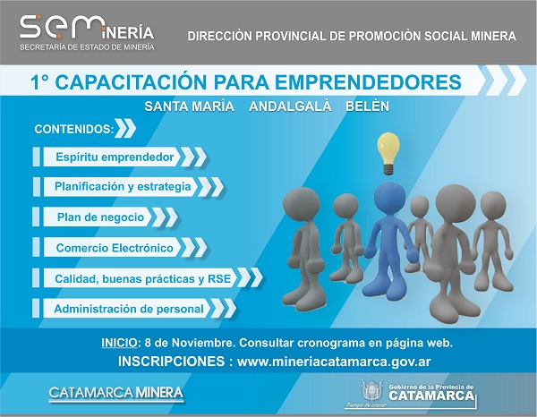 El Estado provincial priorizó esta formación en territorio minero, pero además de proveedores de servicios y productos del sector, también podrán participar aquellos que se interesen en conocer cómo se emprende un negocio o perfeccionarlo.