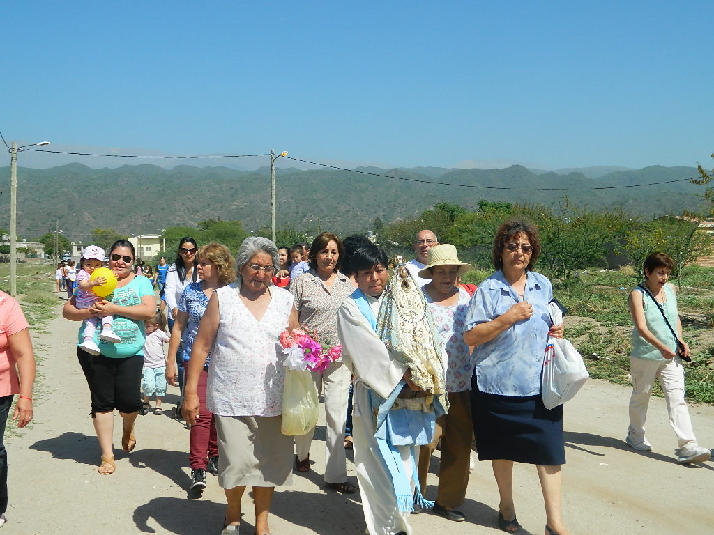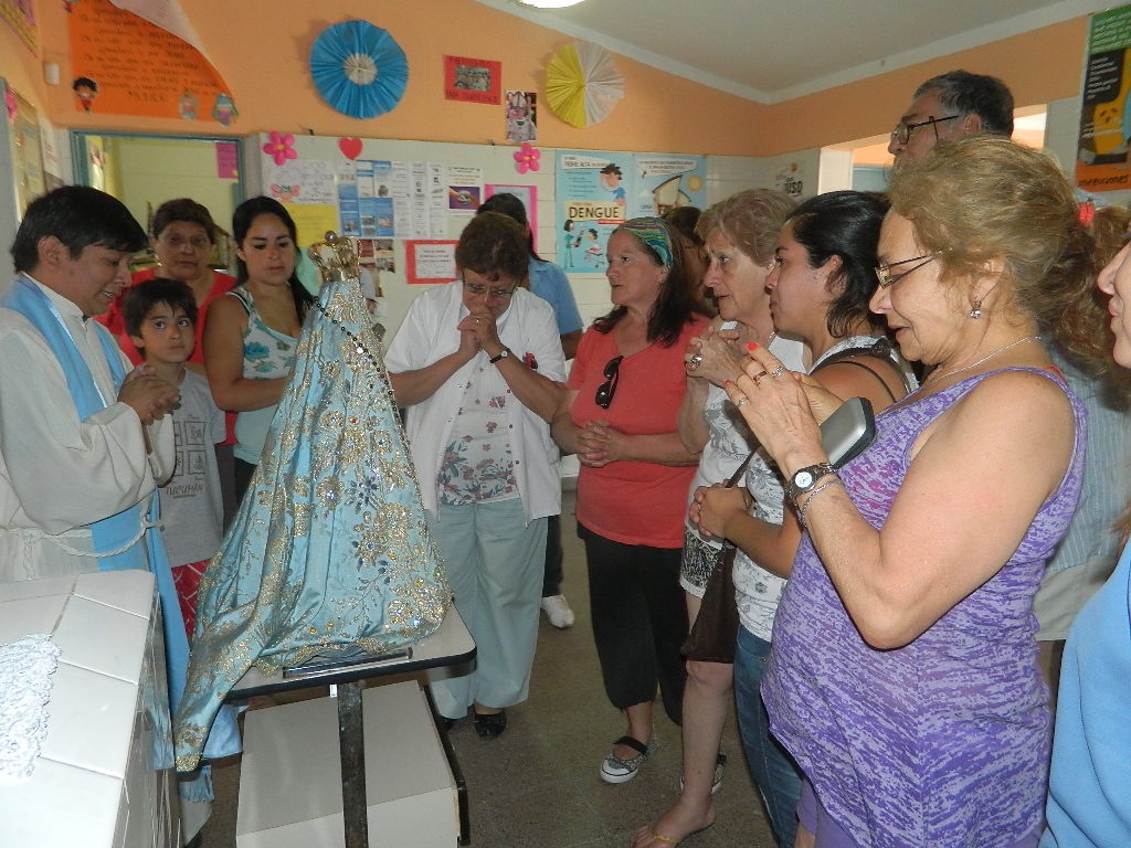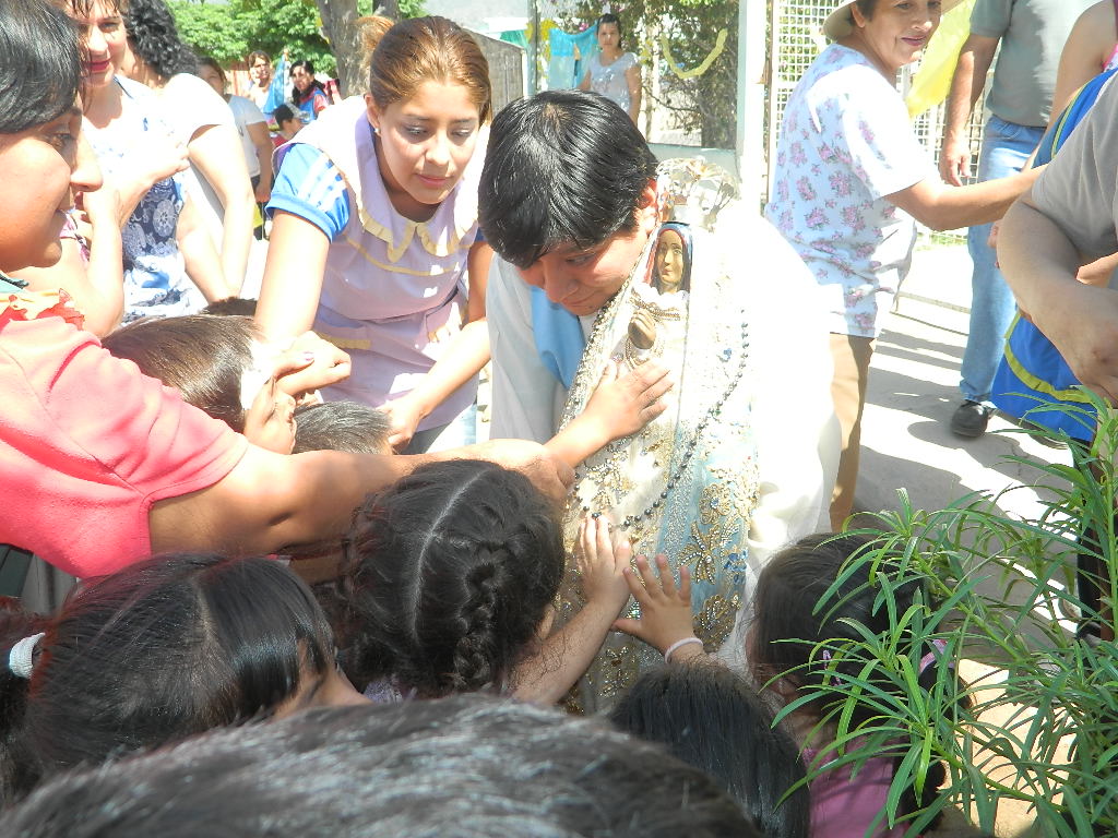 El Presbítero Eugenio Pachado, Capellán Mayor del Santuario y Catedral Basílica detuvo en varias ocasiones la marcha para que los vecinos que estaban apostados en las veredas esperando su llegada, pudieran tomar gracia y besar su manto. Hizo una parada para compartir unas oraciones y bendecir la Posta Sanitaria del barrio, antes de arribar a la esquina de la Escuela donde lo esperaban los niños del desayunador y del Jardín de Infantes junto a sus padres y maestras.
