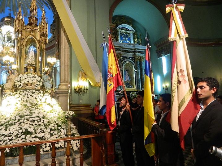 Durante la celebración eucarística, los alumbrantes acercaron sus ofrendas al altar y las banderas de los distintos consulados brindaron un marco especial a la ceremonia religiosa.