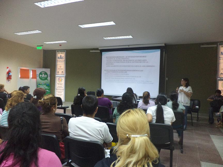 Durante la capacitación se abordaron temas como: psicopatologías (demencia senil, síndrome confusional, crisis de identidad, depresión entre otros). También se trató la problemática del alcoholismo en los adultos mayores, culminando la jornada con un taller de estimulación cognitiva.