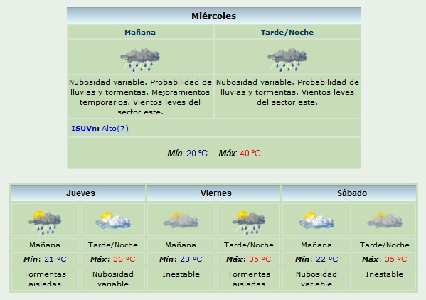 La ola de calor que se registra en casi todo el País también se ahce sentir en el Valle Central catamarqueño. Según el Servicio Meteorológico Nacional (SMN) las temperaturas máximas no bajarán los 35°, mientras que las mínimas rondarán los 23°. Hay muchas probabilidades de lluvias, pero el calor, al menos de acuerdo al pronóstico extendido, continuará en los próximos días.