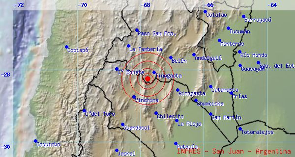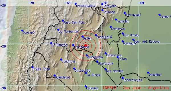 El primero de los movimientos sísmicos se registró anoche a las 22.21:24, cuyo epicentro fue en el departamento Tinogasta, con una profundidad de 197 Km. y una magnitud de 4.2 en la escala de Ritcher.