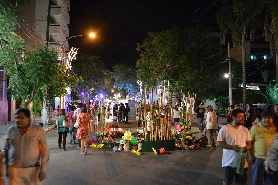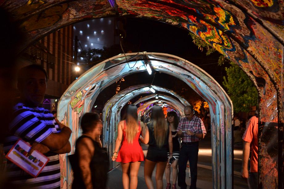 Esa noche, la avenida Roca se convirtió en peatonal en un tramo de cuatro cuadras, transformándose en un gran museo a cielo abierto, con un escenario por cada cuadra, por donde pasaron músicos, bailarines y teatreros, con mucho color, luces y sonidos.