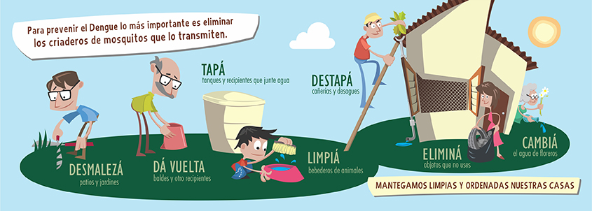 La mejor forma de prevenir el dengue es eliminar todos los criaderos de mosquitos. Como no existen vacunas que prevengan el dengue ni medicamentos que lo curen, la medida más importante de prevención es la eliminación de todos los criaderos de mosquitos, es decir, de todos los recipientes que contienen agua tanto en el interior de las casas como en sus alrededores (latas, botellas, neumáticos, trozos de plástico y lona, bidones cortados).