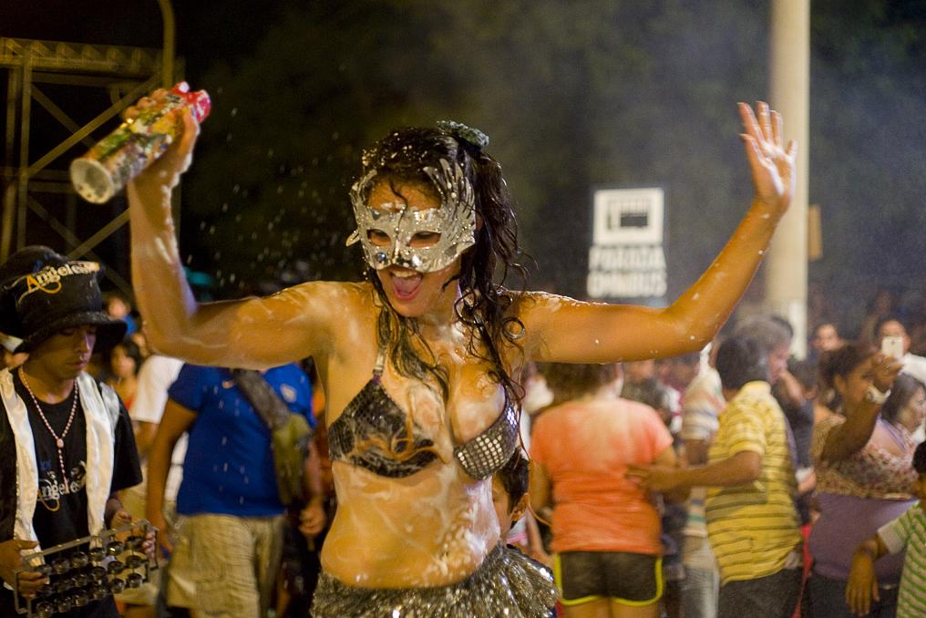 La gente no solo participó del desfile como mera espectadora, sino que se convirtió en protagonista de la fiesta, cantando, bailando, chayando y tirándose espuma.