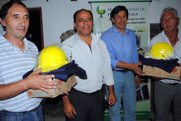 Estos anuncios fueron hechos por las autoridades de Servicios Públicos, que el último fin de semana, encabezadas por el ministro Romero, se reunieron con el intendente de Huillapima, Omar Soria, y el subsecretario de Inclusión Social, Hugo Corpacci, junto a quien entregaron indumentaria (pantalones, camisas y botines) y elementos de seguridad (guantes, cascos y barbijos) a los 18 operarios de la DASI en la localidad de Los Ángeles.