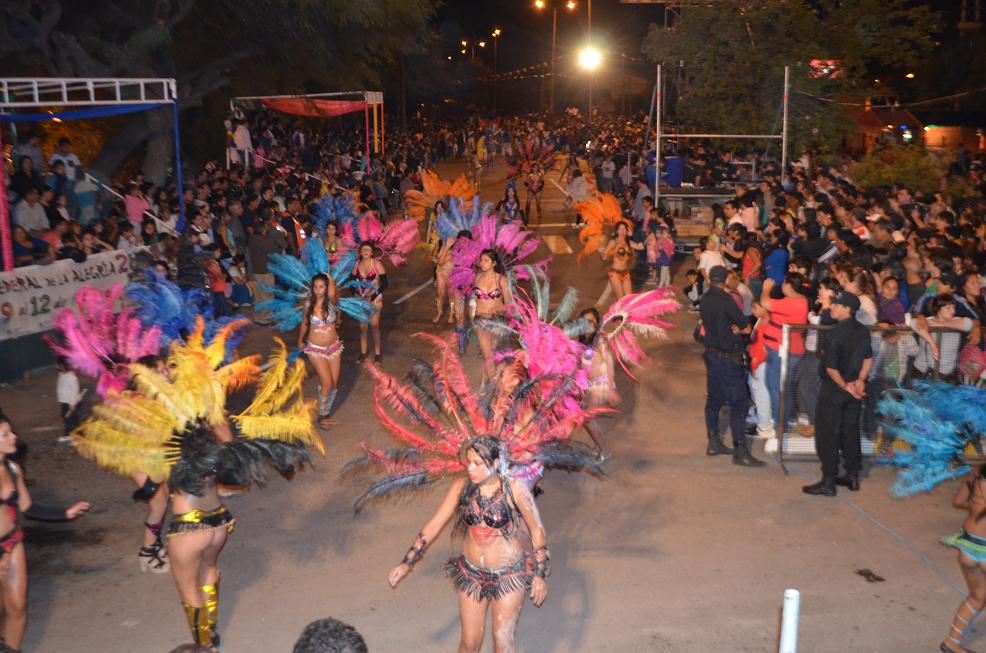 Previa a la actuación de Los Caligaris, sobre ruta Nacional 38 desfilaron más de 20 murgas provenientes de Valle Viejo, Capital, Fray Mamerto Esquiú y Capayán.