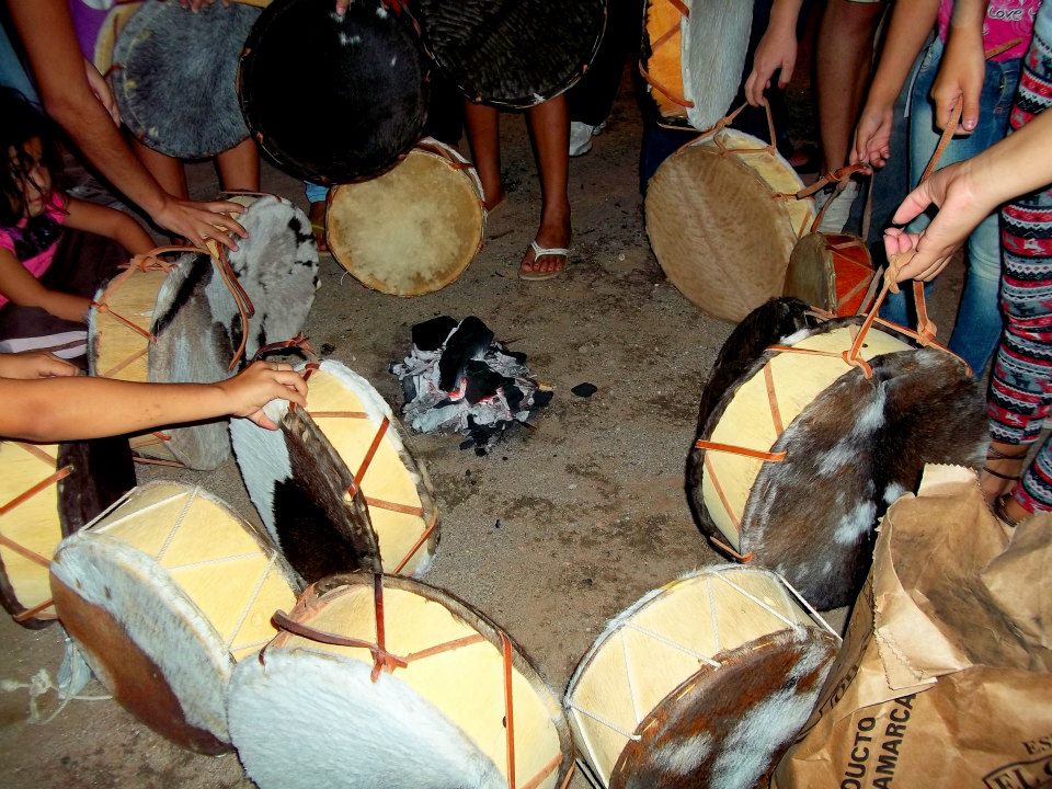 El taller incluyó la preparación de las cajas, cuyos “parches” fueron templados al calor de las brasas. Luego cada vecino tomó una caja y comenzó a arrancarles sonidos, mientras iban animándose a soltar al aire algunas coplas.