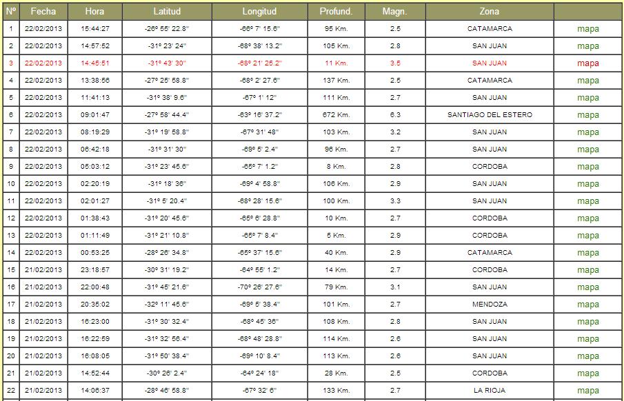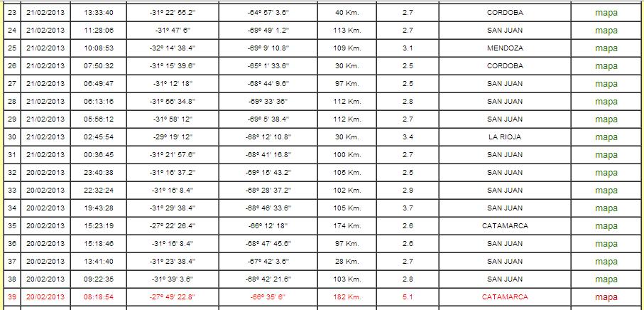 Como siempre, la provincia que más actividad sísmica registró durante el mismo período, fue San Juan, con 23 sismos en los últimos tres días.