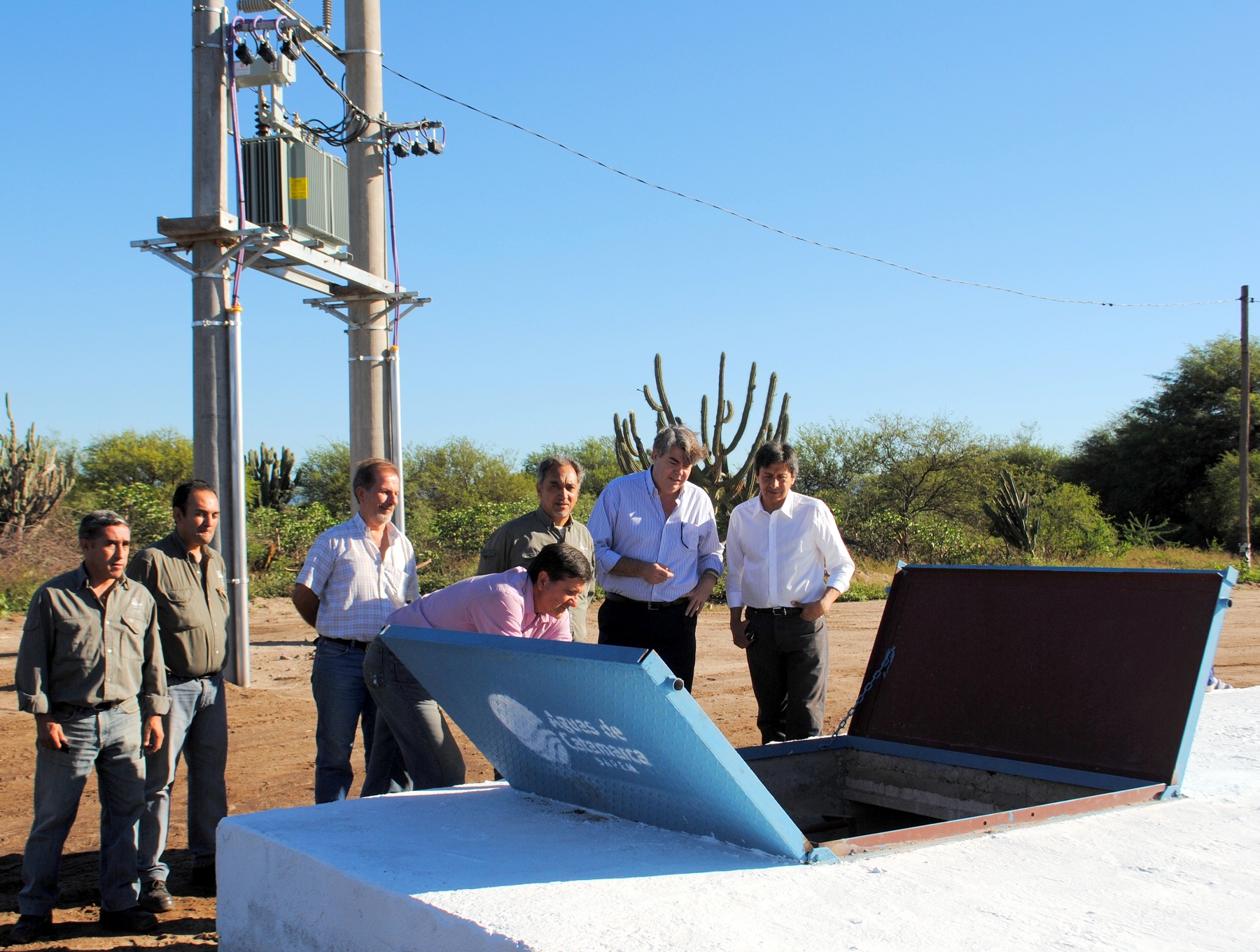 Romero visitó el emprendimiento en compañía del presidente de la empresa Aguas de Catamarca, Arq. Alejandro Venturini; el subsecretario de Agua y Saneamiento, Ing. Carlos Alsina; y el director de la DASI (Agua y Saneamiento Interior), Eduardo Álvarez, entre otros funcionarios.