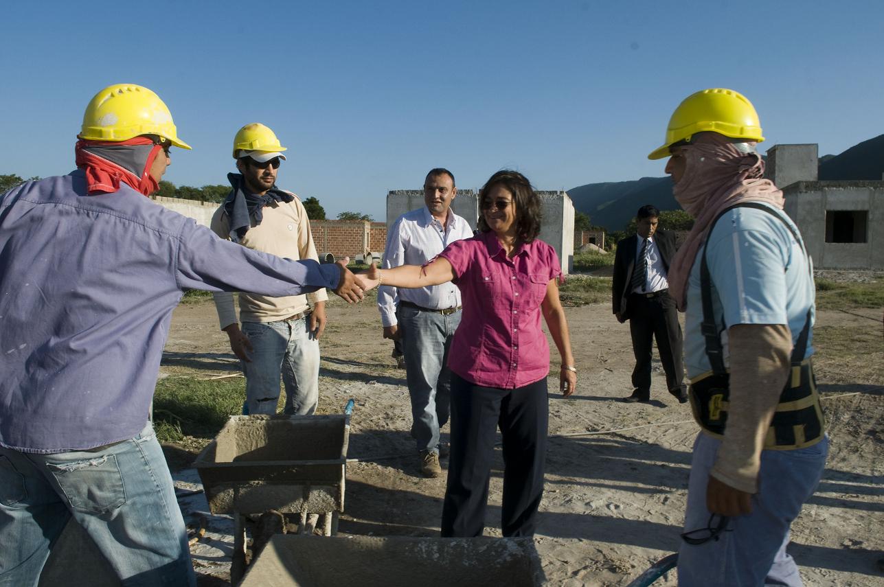 Acompañada por el administrador del Instituto Provincial de la Vivienda, Dante López Rodríguez, Lucía observó los avances en la obra, que se lleva adelante a partir de un convenio firmado por el IPV con Aguas de Catamarca SAPEM.