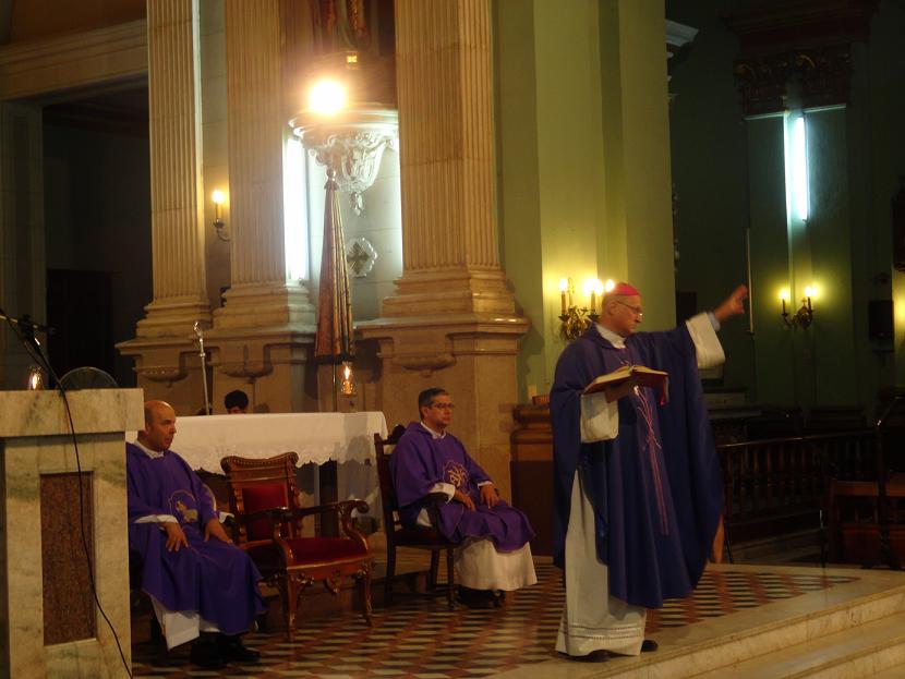 En la homilía, Mons. UrbanÄ, comenzó expresando \"esta Misa tiene un dejo de tristeza y de gran vivencia de la fe por lo que vivimos hace cinco horas. Con mucha fe y confianza en Dios, el Santo Padre dio un paso al costado para que otro asuma el ministerio de Cristo. Por casi ocho años nos ha bendecido con su ministerio; que el Señor le conceda paz\".