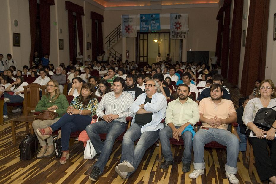 Antes de la proyección de la película, Gustavo Aguirre agradeció a Rolando Pardo por su acompañamiento y a las autoridades del Colegio Nacional por compartir la actividad. Y expresó un contundente mensaje a la juventud. “En la participación política y el compromiso social de los jóvenes esta la fortaleza de la democracia. Los jóvenes y los militantes del ’76 fueron perseguidos, torturados y desaparecidos. Hoy, nosotros podemos participar en política, expresarnos y elegir libremente. Hay un Estado que cree en ustedes, pero también deben ser los jóvenes como dice nuestra Presidenta los custodios de la democracia”, afirmó Gustavo Aguirre.