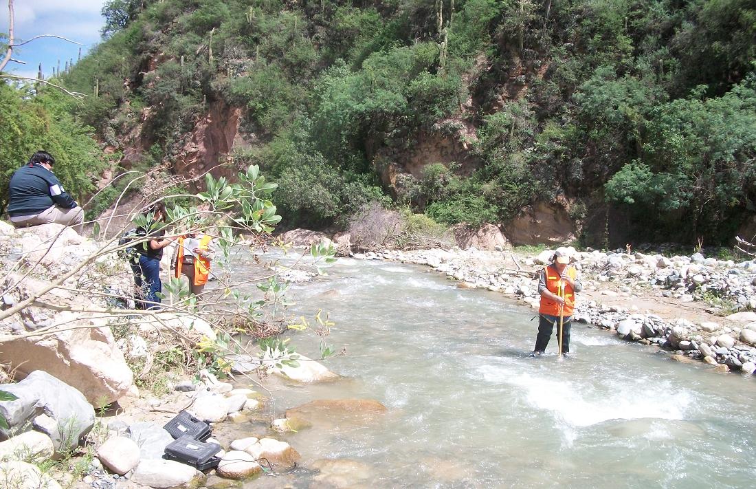 El segundo día, junto a los andalgalenses, se realizó el monitoreo en DS8, un punto de muestreo situado a la salida de la quebrada de Vis Vis cuenca hídrica relacionada con el proyecto Bajo de la Alumbrera. Luego, se continuó en el río Andalgalá, otra cuenca independiente de la anterior, donde se tomó un muestreo de aguas en la estación La Toma, de Andalgalá.