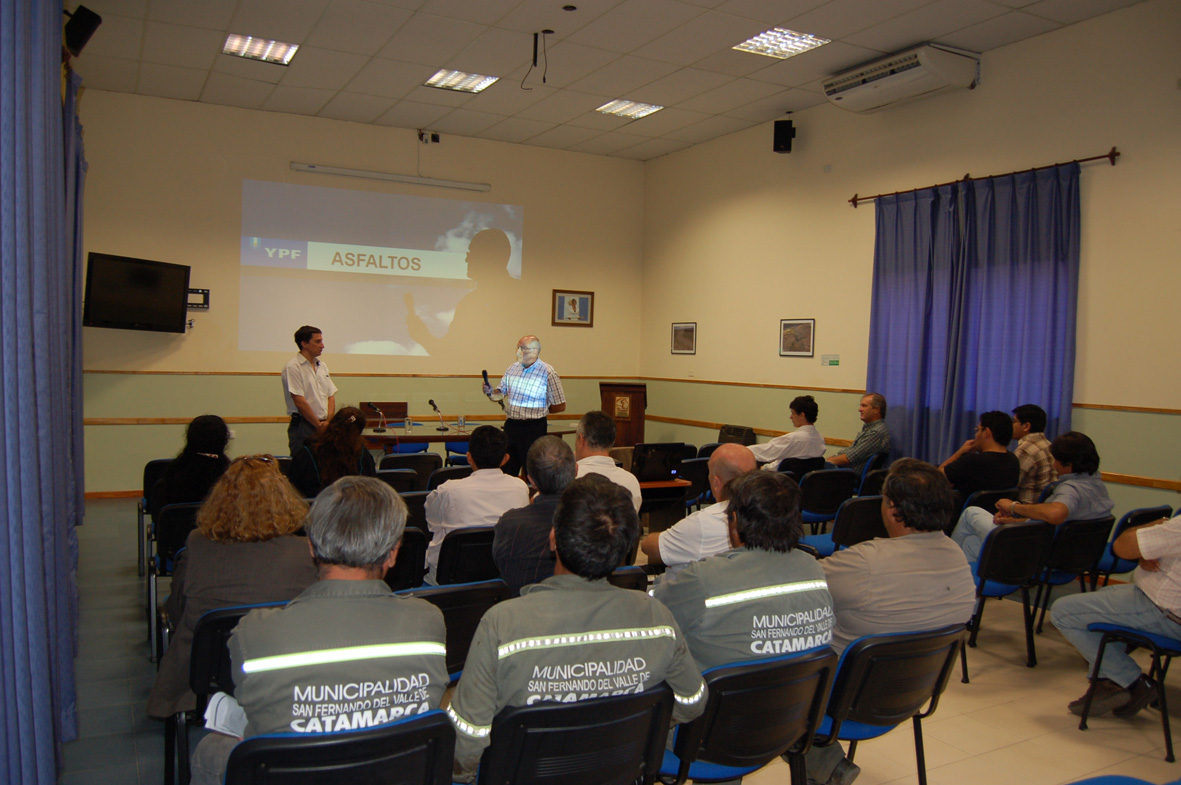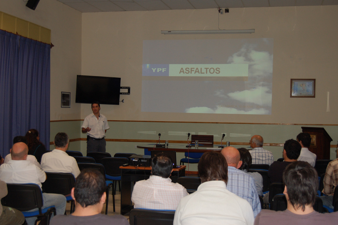 La disertación estuvo a cargo de los técnicos Leonardo Gulo y Rodolfo Dehasa, ambos de la empresa YPF, quienes explicaron a los presentes sobre el correcto uso de asfalto en la pavimentación de rutas y calles urbanas, como así también presentaron nuevos productos recientemente lanzados por la empresa con participación del Estado Nacional.