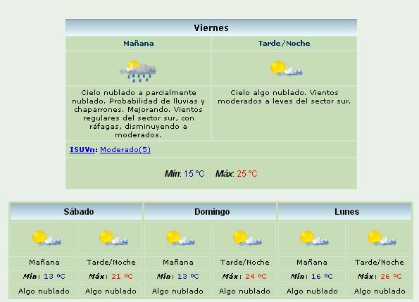 Para hoy se espera que en horas de la tarde cese la lluvia que sigue cayendo por estas horas desde esta madrugada. La máxima prevista para hoy es de 25º.
