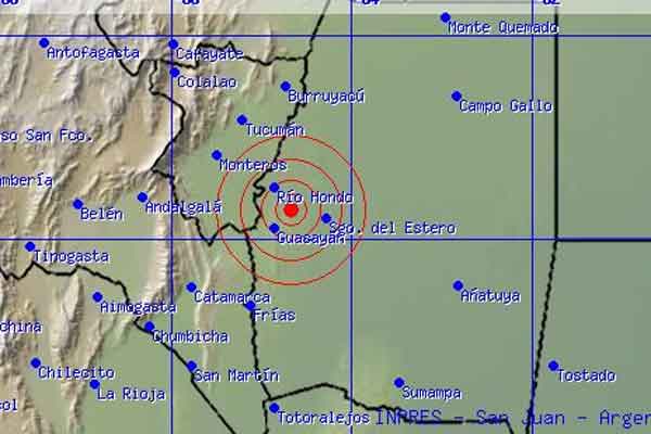 El movimiento fue a las 5 hs., 10 minutos, minutos, 10 segundos y tuvo epicentro a 35 km al oeste-noroeste de la ciudad de Santiago del Estero, en la Sierra de Guasayán, según el Instituto Nacional de Prevención Sísmica (Inpres).