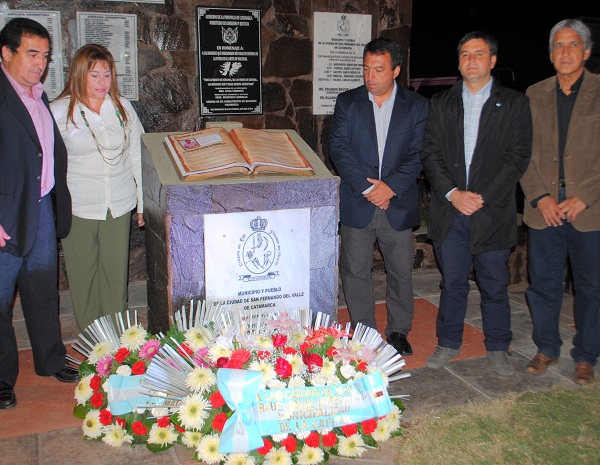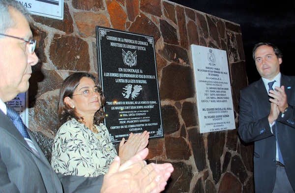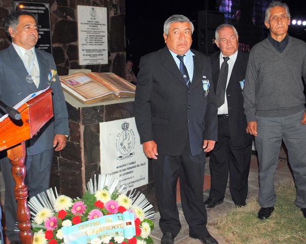 Seguidamente, tras una invocación religiosa a cargo del presbítero Juan Orquera, y el descubrimiento de una placa recordatoria, se realizó un minuto de silencio para evocar a los catamarqueños caídos en Malvinas: Mario Cisneros (de Capital), Mario Rodolfo Castro (de Tinogasta) y Eduardo Federico Marcial (de Santa María), quienes murieron en combate, y a Robustiano Barrionuevo (de Andalgalá) y Carlos Alberto Valdez (de Tinogasta), quienes fallecieron en el hundimiento del crucero General Belgrano.