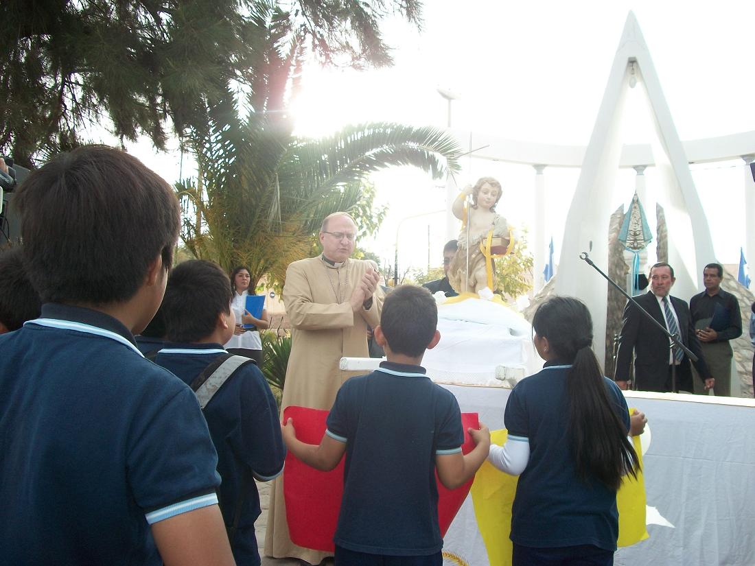 Luego, en un clima de mucha alegría, portando la imagen del Patrono San Juan Bautista Niño, todos los presentes se encaminaron hasta el templo parroquial, en cuyo recorrido recibió el saludo de vecinos, estudiantes, docentes, y fue homenajeado con aplausos y cantos de bienvenida por los pequeños del colegio Sor Pierina.