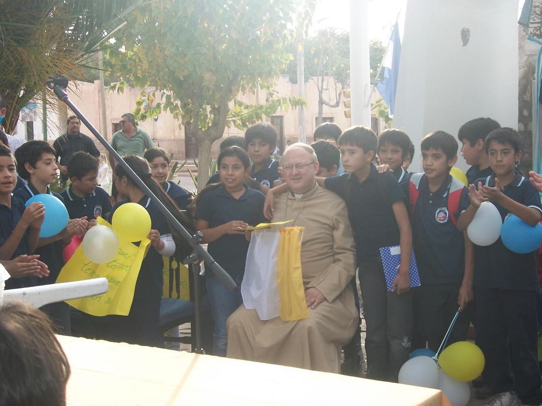 Mons. Urbanc destacó la participación de los chicos, quienes se acercaron tan espontáneamente para manifestarle su afecto, y agradeció que los adultos lo hayan permitido, haciendo realidad las palabras de Jesús: “Dejad que los niños vengan a mí”.