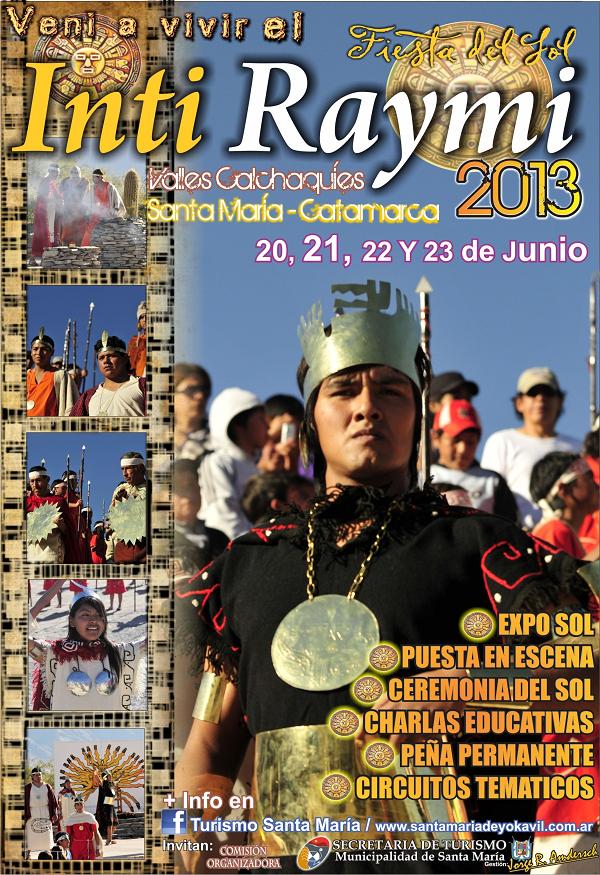 En revalorización de este momento histórico, es que, en la ciudad de Santa María provincia de Catamarca se llevara a cabo por VI EDICIÓN DEL “INTI RAYMI” antes de la caída del Imperio del Tawantinsuyo en las huestes de Francisco Pizarro, este acontecimiento está acompañado con toda una movida cultural, turística y artística, principalmente una puesta en escena interpretada por jóvenes santamarianos para recrear así todo el ritual del año nuevo andino, a través de danzas y cantos con un entorno natural del Valle del Yokavil. Se suman otras actividades que están dentro del programa de esta fiesta como la “Ceremonia de la Salida del Sol”; Expo “Sol”: paseo artesanal con la posibilidad de admirar y adquirir creaciones de artesanos del departamento de Santa María; Gastronomía Étnica: con platos que marcan la identidad de los pueblos andinos; Excursiones a circuitos: que reflejan la identidad cultural de nuestros originarios. La revalorización de esta fiesta además de significar un aporte para la identidad cultural de nuestro departamento, forma parte de la propuesta turística del mismo en la modalidad de Turismo Cultural en la provincia de Catamarca, un turismo muy demandado por el nuevo turista quien busca conocer y experimentar nuevas culturas, diferentes a la de él y que es además cuidadoso con la naturaleza.