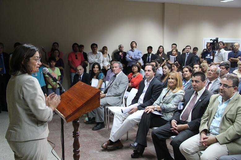 Tras el descubrimiento de una placa y el corte de cintas inaugurales, iniciando su mensaje, la Dra. Corpacci hizo mención y felicitó “al equipo de Obras Públicas, a los arquitectos, a los técnicos, a los obreros”, a quienes calificó como “tal vez, los principales militantes, no políticos, de la gestión de este gobierno. Eso es muy importante, porque son los que más trabajan, los que le ponen el hombro a la provincia, y eso para nosotros tiene mucho valor”.