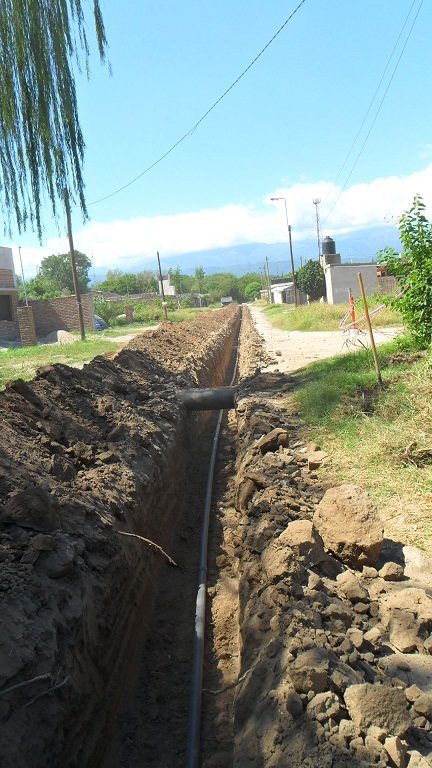 Aguas de Catamarca SAPEM aportó maquina para excavación y relleno, personal para ejecutar el empalme y las conexiones domiciliarias y personal del Área Proyectos y Obras para dirigir la obra.