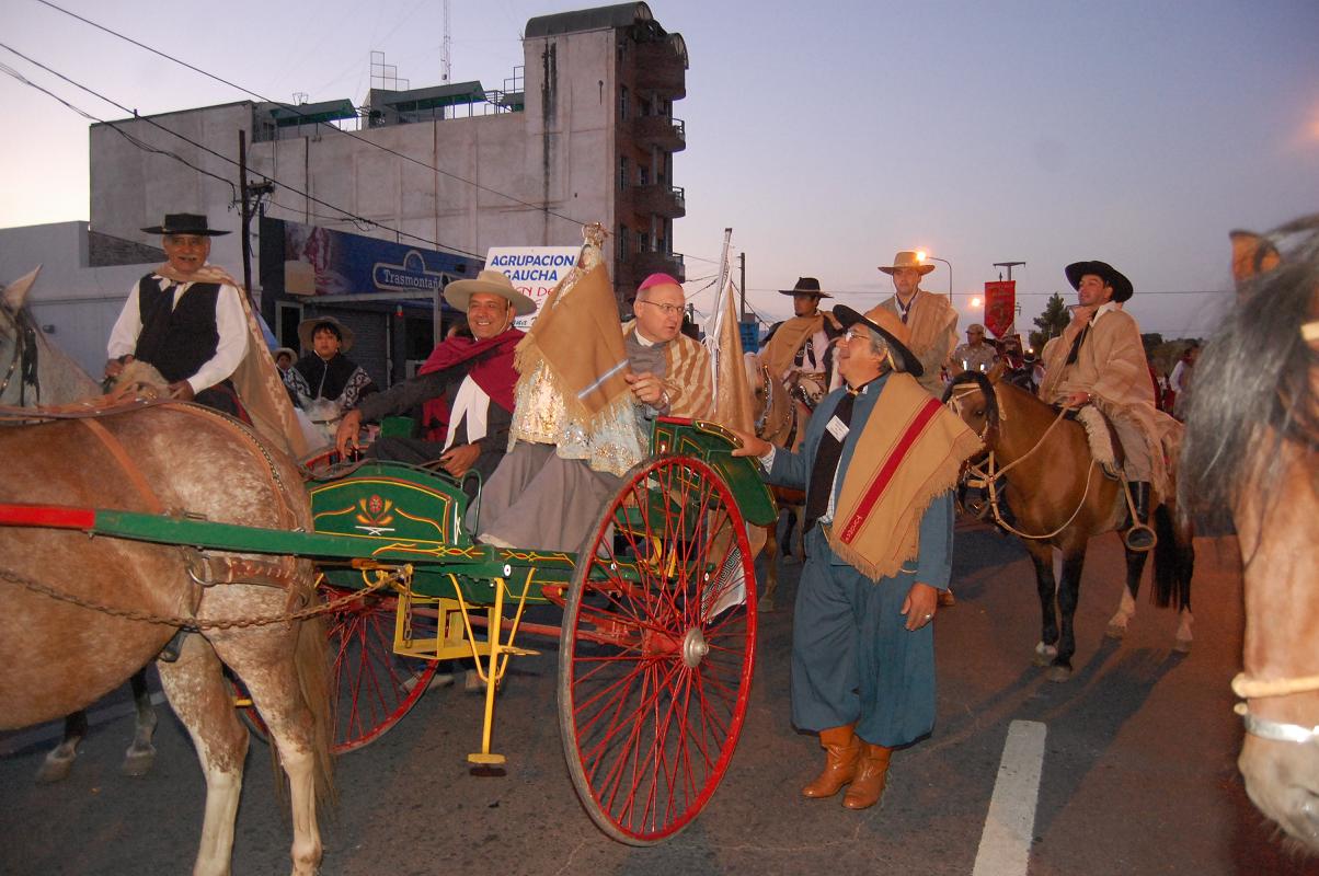 Desde allí, el vicegobernador Dalmacio Mera, junto a todas las agrupaciones de gauchos, se agruparon para compartir la cabalgata, que se inició con el desplazamiento de los jinetes, que escoltaban a la Sagrada Imagen de La Virgen del Valle, transportada por el Obispo Luis Urbanc. Ver el video de lo acontecido