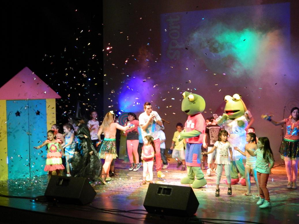 El espectáculo de gran jerarquía titulado “el Mundo de Colores” que brindó Fantasías Kids, también fue disfrutado por los niños de estos comedores que fueron trasladados por la comuna hasta el teatro.