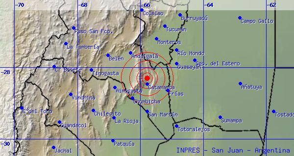 temblor. lunes, 8 de abril de 2013 00:00 lunes, 8 de abril de 2013 00:00 Datos del movimiento telúrico:Sismo con epicentro en CATAMARCA Fecha: 08/04/2013 a la hora: 00:55:26Profundidad:20 Km.Magnitud:2.5