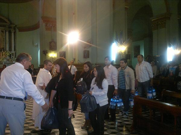 Durante la misa celebrada esta mañana, la cartera social realizó donativos consistentes en alimentos no perecederos y agua mineral, que serán destinados a los damnificados por las inundaciones en Buenos Aires.