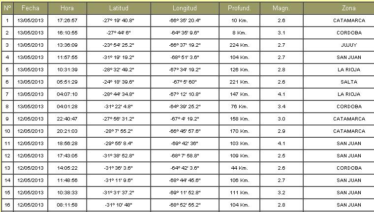 Es importante mencionar en los últimos 4 días se registraron 6 temblores en el territorio catamarqueño. Ayer hubo dos. Conozca los registros del organismo nacional, con los últimos 50 sismos en la región.