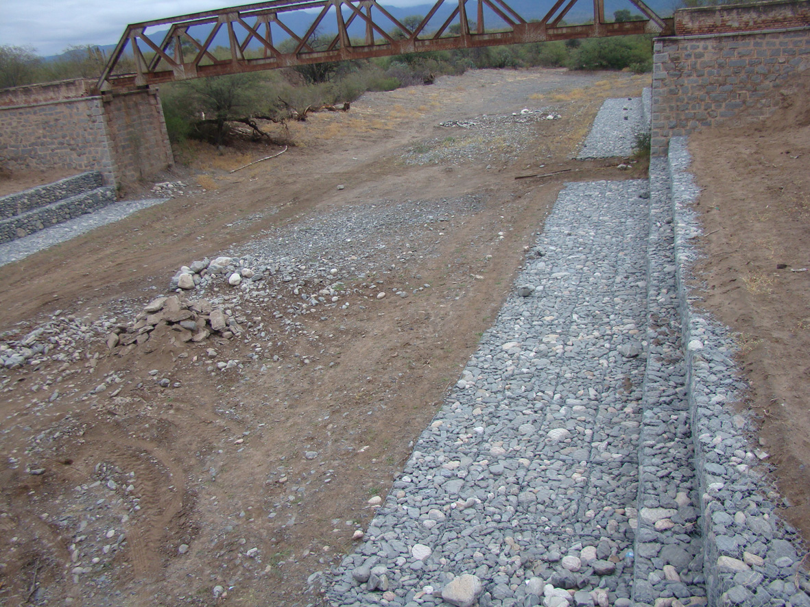 En este caso las obras, que cuentan con un presupuesto de 8,5 millones de pesos, registran un avance superior al 70%. Se construyeron gaviones y colchonetas de piedra embolsada con alambre tejido, disipadores de energía y reconstrucción de conos de puentes que fueron afectados seriamente durante la temporada estival 2011-2012.