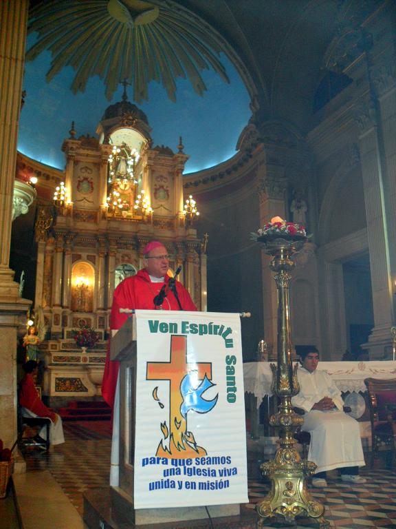 El templo catedralicio, adornado con banderolas rojas que tenían la inscripción de los siete dones del Espíritu Santo: sabiduría, inteligencia, consejo, fortaleza, ciencia, piedad, temor de Dios, estuvo colmado de fieles.