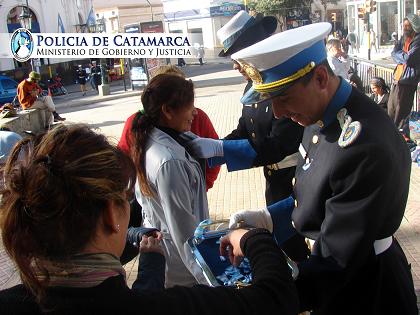 La actividad se llevó a cabo en el marco de un trabajo curricular y tuvo su inicio en el Paseo de la Fe y posteriormente en la Peatonal Rivadavia, donde los ocasionales transeúntes recibieron con beneplácito el simbolo patrio.
