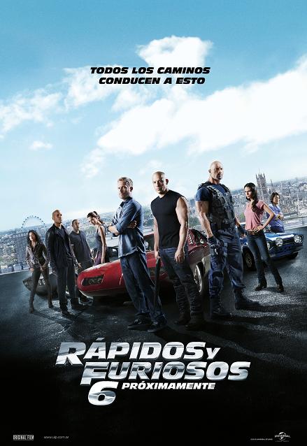 Sinopsis: Desde que Dom (Vin Diesel) y Brian (Paul Walker) desbarataron el imperio de tráfico de Costa en Rápido y Furioso 5 Sin Control (Fast Five, 2011) y se quedaron con 100 millones de dólares para su equipo, nuestros héroes están separados alrededor del planeta. Pero su prohibición para volver a casa y vivir en la clandestinidad, dejaron sus vidas incompletas.Mientras tanto, Hobbs (Dwayne Johnson) ha estado persiguiendo a una organización de mercenarios altamente entrenados alrededor de 12 países. Su líder, interpretado por Luke Evans, cuenta con la ayuda de Letty (Michelle Rodríguez), el primer amor de Dom, que se creía muerta.La única manera de detener a esta banda es encontrarlos en la calle y vencerlos en su juego, por lo que Hobbs le pedirá a Dom que una a su equipo y lo ayude. ¿La paga? Perdón completo de sus crímenes y la posibilidad de volver a casa.