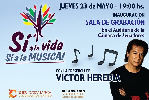 La presencia estelar de Víctor Heredia en el Auditorio del Senado la tarde del jueves, dará inicio a una serie de actividades culturales en las que acompañará a Mera dando apoyo a “Si a la Cultura” del “Programa Sí a la Vida”, que instrumenta la Vicegobernación junto a Ciudadanos en Red (CER). En el evento se darán a conocer las acciones específicas planificadas en apoyo a nuestra cultura e identidad y a sus verdaderos protagonistas: los artistas.