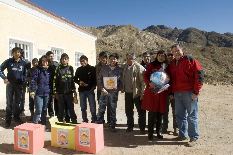 Minas Capillitas está ubicada a 300 km de la Capital y a 3.200 msnm, y es el lugar de donde se extrae la piedra nacional rodocrosita. En la oportunidad la empresa minera presentó dos proyectos en la comunidad: el primero pretende sumar a la comunidad educativa y en este caso incluir a la escuela secundaria rural de Minas Capillitas, en un proyecto de cooperación con un establecimiento de la Capital de la provincia de Catamarca. Con ese fin se abre un proceso de vinculación entre escuelas, para que aquellas con acceso a servicios esenciales apoyen a otras menos equipadas en el interior de la provincia de Catamarca. El objetivo es que contribuyan solidariamente a través de lazos de cooperación entre el colegio y la escuela, intercambiando ideas, información, cartas, creando proyectos en conjunto, y cualquier forma de cooperación que las escuelas estén interesadas en brindar. También se pretende contribuir con ello a la formación y el aprendizaje del alumnado en temas tan actuales como sostenibilidad, energías renovables y cooperación al desarrollo y a su vez crear alianzas estratégicas entre establecimientos que pueden aportar buenas prácticas y técnicas pedagógicas, con otros que quieren mejorar el aprendizaje de sus alumnos.