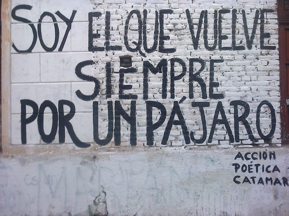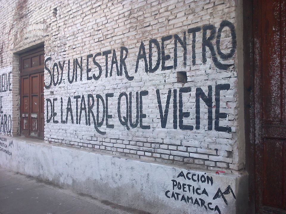 La coordinadora de Acción Poética Catamarca, Beatriz Boneu, explicó que el grupo “solo realiza estas pintadas en paredes que han sido cedidas por sus dueños, expresamente para hacer poesía”, porque lo que pidió a la comunidad y “especialmente a los partidos políticos, no borrar las pintadas, ni destruirlas”.