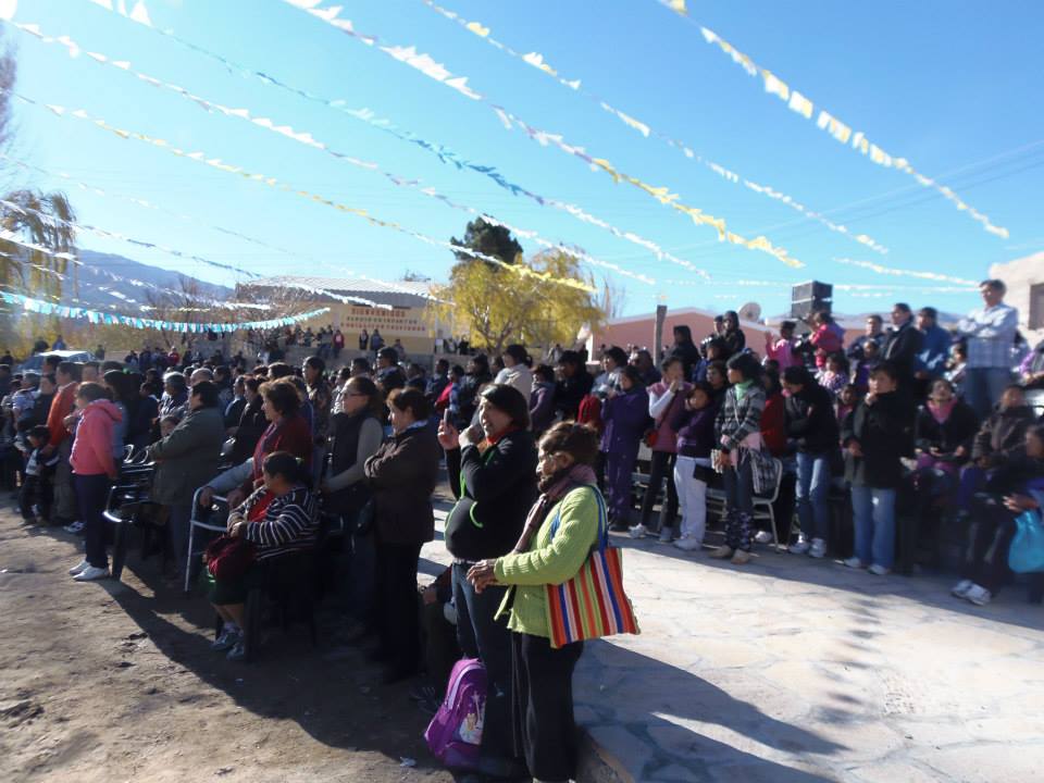 Los pobladores realizaron el izamiento de las Banderas Argentina y Papal en los mástiles enclavados en el lugar; y luego se descubrió la placa recordatoria.
