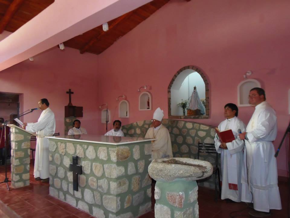 En el inicio de la ceremonia religiosa, el párroco dio lectura al decreto correspondiente, y en el transcurso de la misma se bendijo el ambón, desde donde se proclama la Palabra de Dios, la pila bautismal y el sagrario; y se consagró el altar de la nueva capilla de Nuestra Señora del Valle, construida en terrenos donados por Dn. Indalecio Pachado (ya fallecido) y su esposa Dña. Celestina.