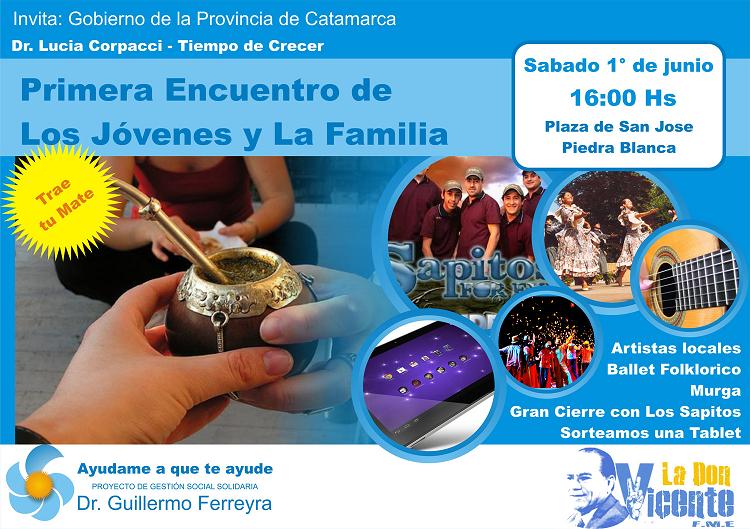 El referente de la agrupación, Dr. Guillermo Ferreyra, invita a todos los jóvenes y familias del departamento Fray Mamerto Esquiú a disfrutar de una tarde al aire libre, con espectáculos musicales, danzas y muchas sorpresas más.
