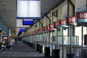 Las boleterías de la Terminal de Ómnibus de Retiro continuaban cerradas y en algunas se veían carteles que informaban \"Cerrado por medida gremial\" o simplemente \"Cerrado por paro de UTA\".